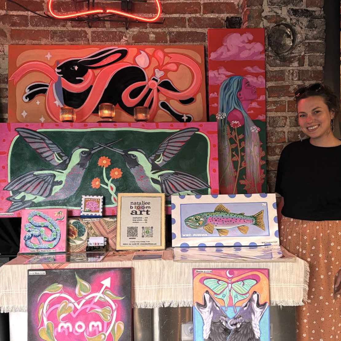 Natalie Bloom is an independent artist living in Waynesville, North Carolina. Inspired by intuition, impulse, and nature, Natalie is just trying to enjoy the process and help others do the same.